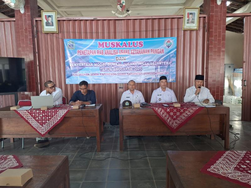 SEMIN (SIDA), Rabu 15 Oktober 2025 Pemerintahan kalurahan semin melaksanakan Muskalsus RAB katahanan pangan,Dalam Muskalsus ini dihadiri oleh Panewu semin Bp Haryanto,PLD,Lurah beserta pamong,LPMK dan tentunya BUMKLA dan Bamuskal selaku penyelenggara. Dalam muskal ini disepakati bahwa RAB unutk ketahanan pangan kurang lebih Rp 349.000.000,00. Semoga dengan rencana anggaran tersebut bisa terlaksana dengan baik oleh Bumkal yang kedepannya diharapkan benar - benar menunjang dalam ketahanan panga di kalurahan semin.